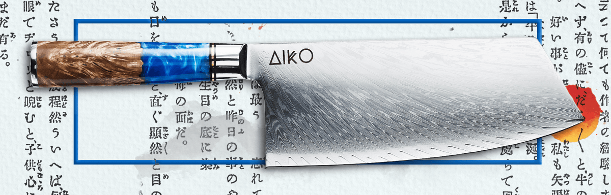 Aiko Blue Damascus Steel Knife with Coloured Blue Resin Handle
