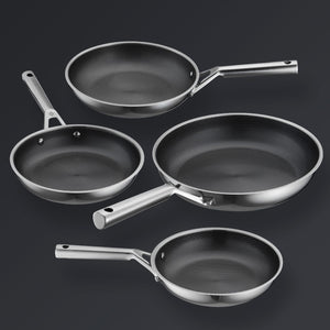 Four pans. Four lids. Infinite performance. Professional hybrid non-stick innovation in every size—20 cm, 24 cm, 26 cm, and 28 cm. Precision-engineered from advanced 30D stainless steel with a chemical-free Hive Hybrid™ ceramic surface. PTFE, PFOA & PFAS-free. No compromise.
